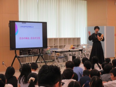 10月6日 校歌作詞 山崎先生 来校 2025/10/06 本校の校歌を作詞してくださった山崎先生がベオグラードよりお越しくださいました。 中休み後に体育館に集まり、全... 10月4日 学校保健委員会(4年生) 2025/10/04 4年生は、ランチルームで学校保健委員会の公演を聴きました。 命の誕生学についての講話です。 おなかの中での... 10月4日 セーフティー教室 2025/10/04 体育館でファミリーeルールの方に、SNSのルールを教えていただきました。 低学年では、おうちでのルールを決め...